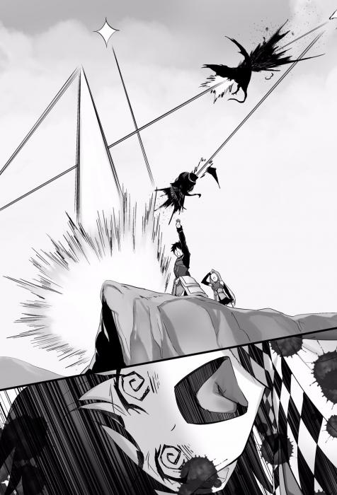 Перед взглядом Куровал, которая смотрела на небо в оцепенении, будучи ошеломленной, доспехи, внутри которых находилась Лиарис, продолжали свободно парить по небу, атакуя еще двух полудраконов, а затем стали опускаться вниз.